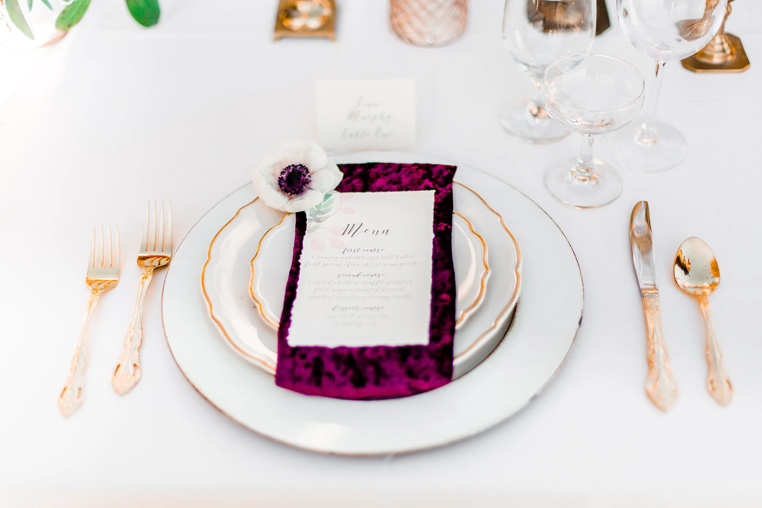 The color green was always a key player in the design concept. As fate would have it, eight months into the planning process Pantone released "Greenery" as their color of the year. Knowing I didn't want to be just another greenery in the crowd, I turned up the wildflower factor and even grew a bunch of my own before the big day. My dad worked for months and months on curating a wildflower meadow bordering my parents' immaculately manicured lawn. He suggested putting the dance floor smack in the middle of the flowers, and I almost cried with glee! As a self-proclaimed forest fairy, I could not wait to dance amongst the wildflowers.