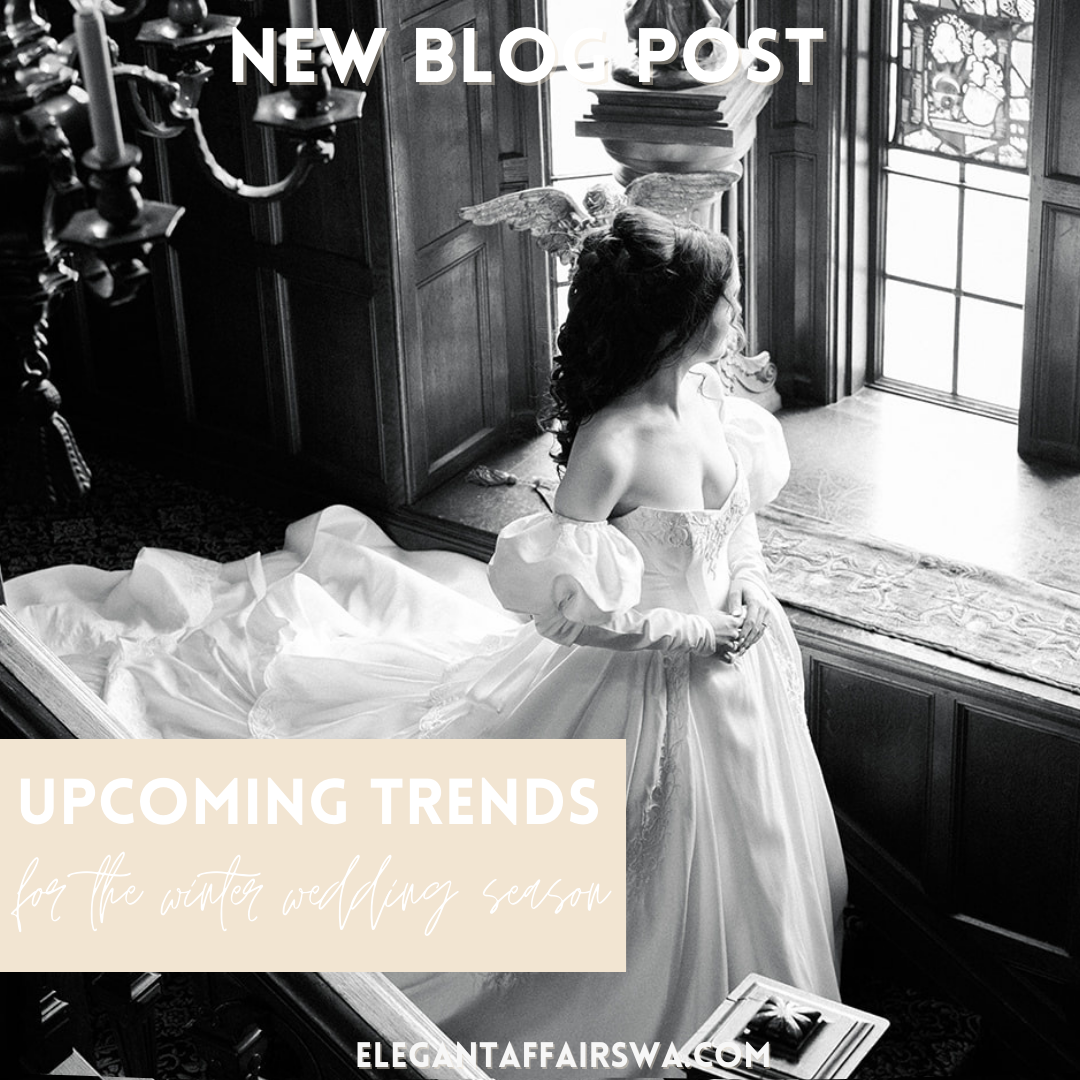 We are so excited for the magic that the winter season brings. There is something truly magical about the season. We don’t know whether it is the crisp weather, the occasional PNW snow fall, or maybe it’s all the Hallmark Christmas movies that we’ve been watching. But, winter has arrived and we look forward to seeing what the season, and our couples, have to offer! Winter is elegant and romantic all wrapped up in a cozy blanket. If you’re planning your winter wedding, or maybe you’ve got your upcoming winter nuptials, we’ve collected our top ten favorite wedding trends for the 2024 season.